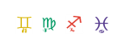 Sus signos astrológicos asociados son aries, leo y sagitario. Del primero al último tienen un orden lógico. Aries es la parte energía de la parte más física, o sea, la energía del cuerpo, el impulso, la acción, la energía se pone a disposición del cuerpo para llevar a cabo una acción o iniciar algo. Es como encender una cerilla. A un nivel más consciente es la capacidad del Aquí y el ahora, el instante presente. Este signo está regido por Marte en la personalidad y Mercurio en el alma.